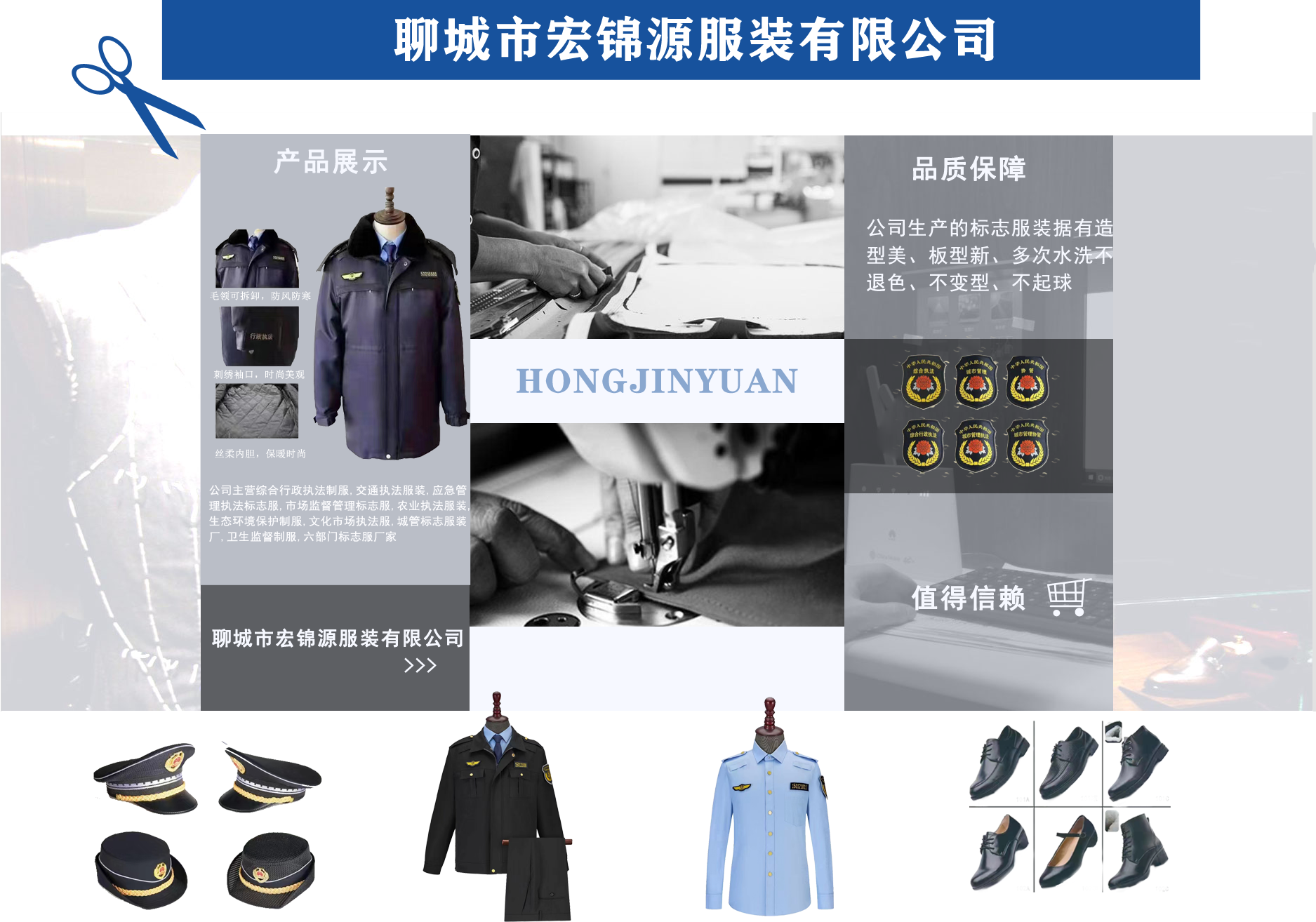 綜合行政執法制服,交通執法服裝,應急管理執法標志服,市場監督管理標志服,農業執法服裝,生態環境保護制服,文化市場執法服,城管標志服裝廠,衛生監督制服,六部門標志服廠家-聊城市宏錦源服裝有限公司 公司簡介/ ABOUT